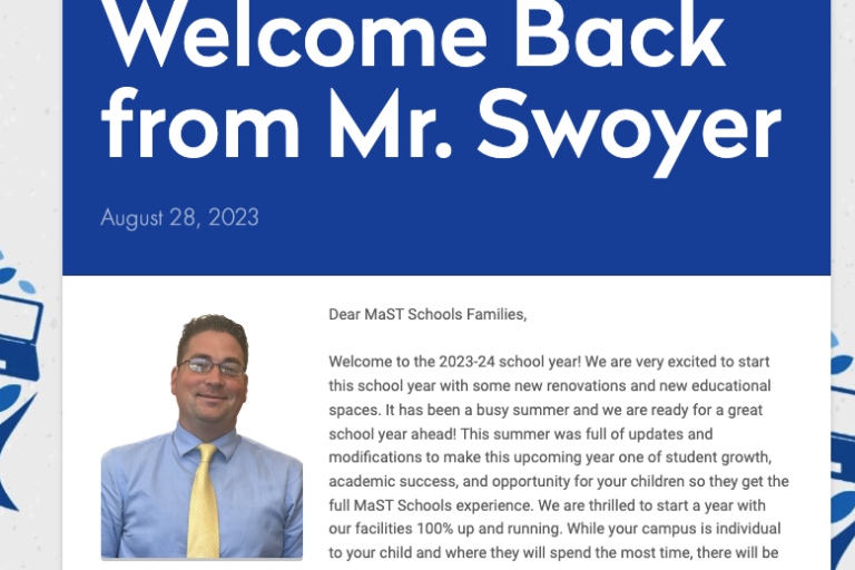 Dear MaST II Parents and Guardians: We would like to introduce Mr. Chuck Puchon who will be serving as a Principal/Building Leader for MaST II in training until the end of the year! Chuck comes to us with 15 years experience in education including multiple roles across teaching and administration. Chuck is enthusiastic about kids…
